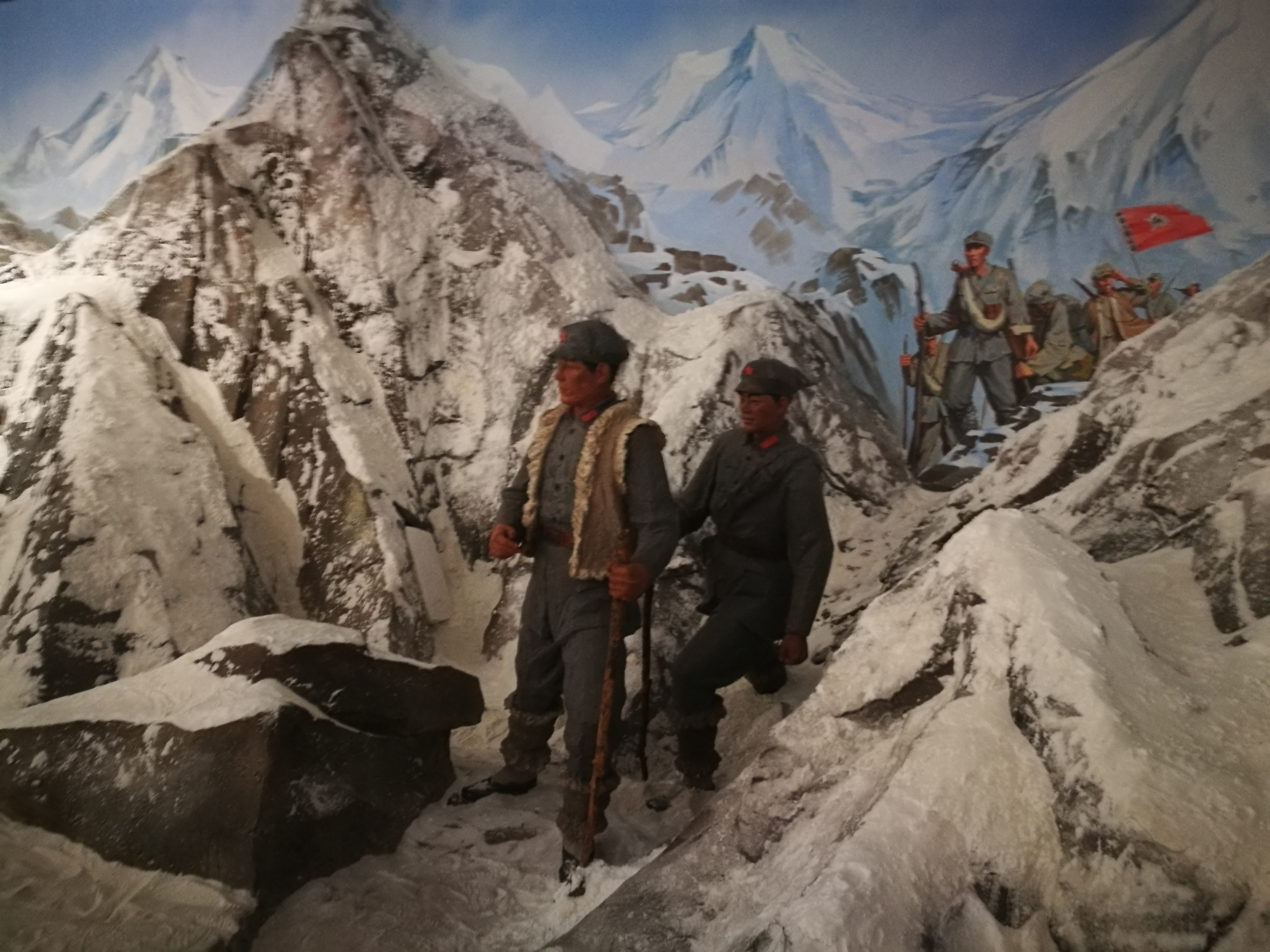 特別值得一提的是本次展覽通過沉浸式布展,還原紅軍翻越雅哈雪山等場景,觀眾可走入到場景中,設(shè)身處地感受紅軍長征過云南的艱險(xiǎn)。