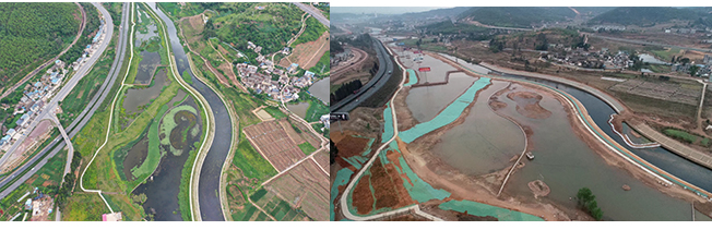 4.楚雄市龍川江西觀橋斷面水體達(dá)標(biāo)工程,通過實(shí)施污染底泥疏浚、橡膠壩、生態(tài)河堤建設(shè)、生態(tài)濕地恢復(fù)等一系列水環(huán)境治理及水生態(tài)修復(fù)工程,龍川江西觀橋國控?cái)嗝嬉延?span>2019年從重點(diǎn)整治的劣Ⅴ類國控?cái)嗝嬷幻摿樱崆耙荒赀_(dá)到水環(huán)境功區(qū)劃IV標(biāo)準(zhǔn)。